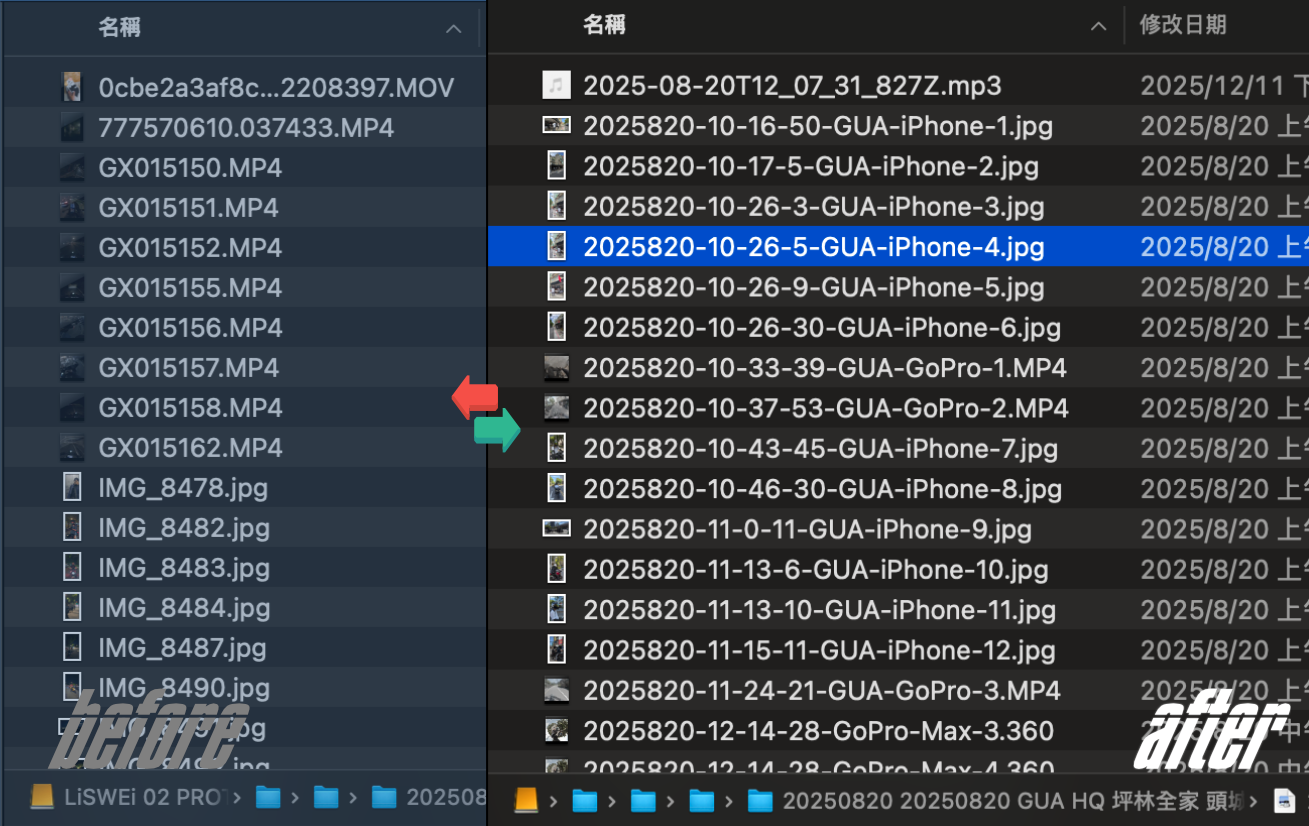 ✅ 13 個相機品牌的自動化命名流程( GoPro / Sony / BMC / iPhone / DJI.. )